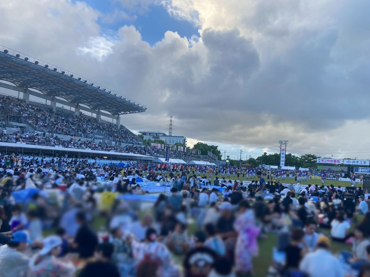 花火をしっかり見たいならスタンド側、エイサーを傾斜に座って見たいなら外野の席がおすすめです。