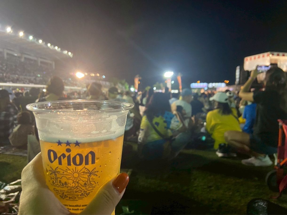 浴衣や甚平を着て参戦するのもあり!雰囲気が出てとても素敵でした。私は出店で主人が買ってきてくれたオリオンビールでエイサー観戦。主人、いい仕事するな…笑