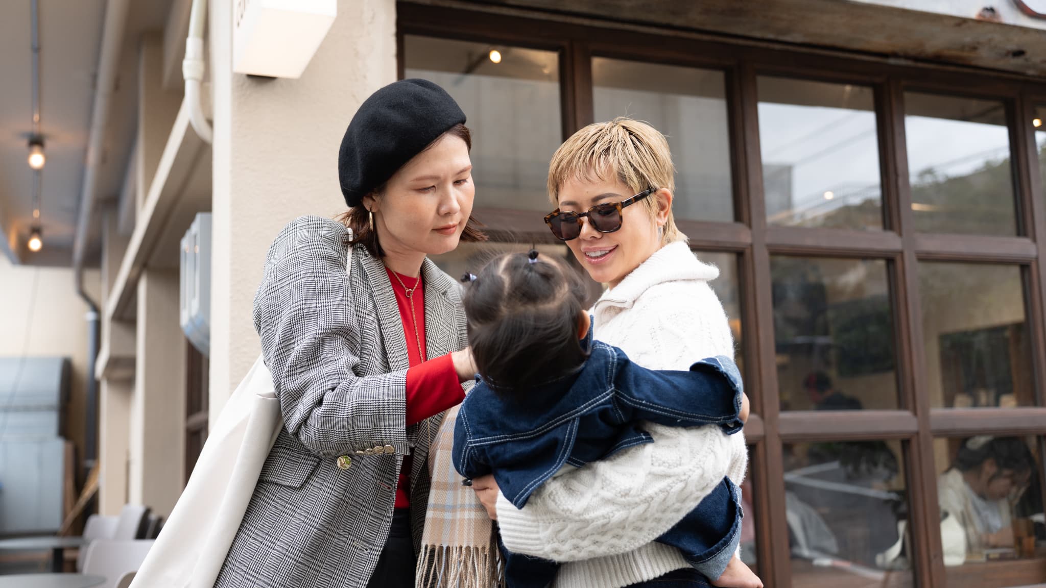 義理の両親のサポートにも感謝しています。私が仕事で早めに出ないといけない時は、お義母さんが家まで来て娘を見てくれたり。全身ヒョウ柄で「行ってきます!」って出かける私を、「頑張ってね〜」って送り出してくれるお母さんなんですよ(笑)。心から感謝しています。