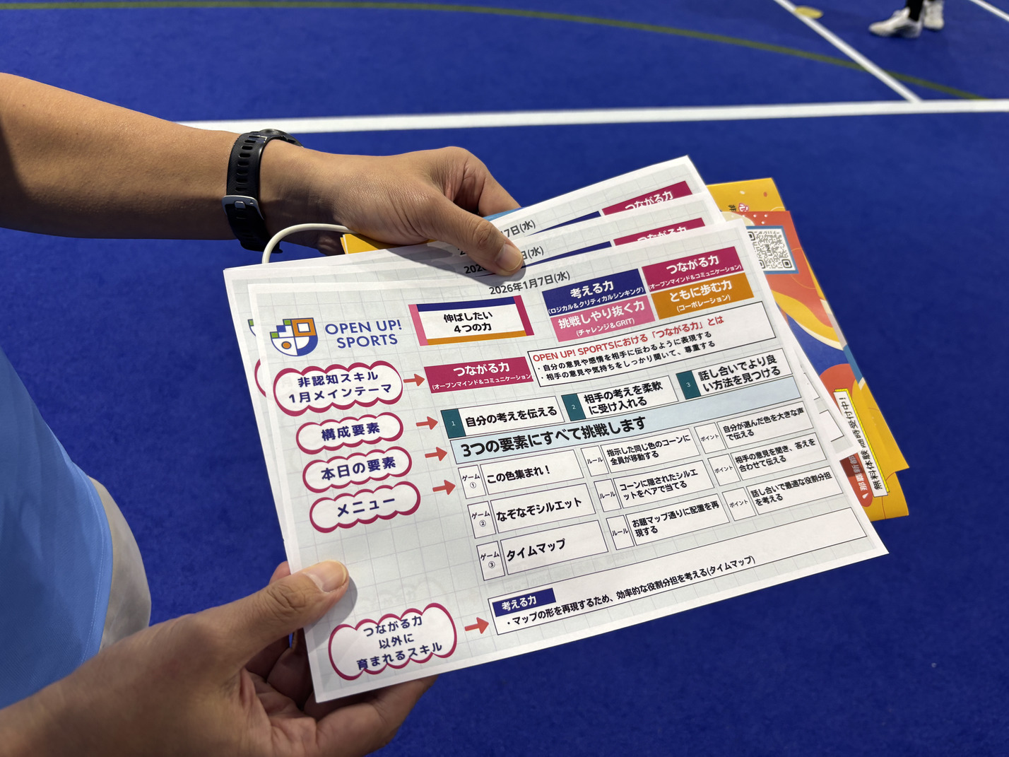 実はここ、単なる運動教室じゃないんです。 週1回(月曜日もしくは水曜日)のレッスンで、遊びながら「心の力=非認知スキル」を育む独自のプログラム。非認知スキルを「考える力」「ともに歩く力」「挑戦しやりぬく力」「つながる力」の4つに分けて、月ごとにテーマを決めて取り組んでいるのだそう。