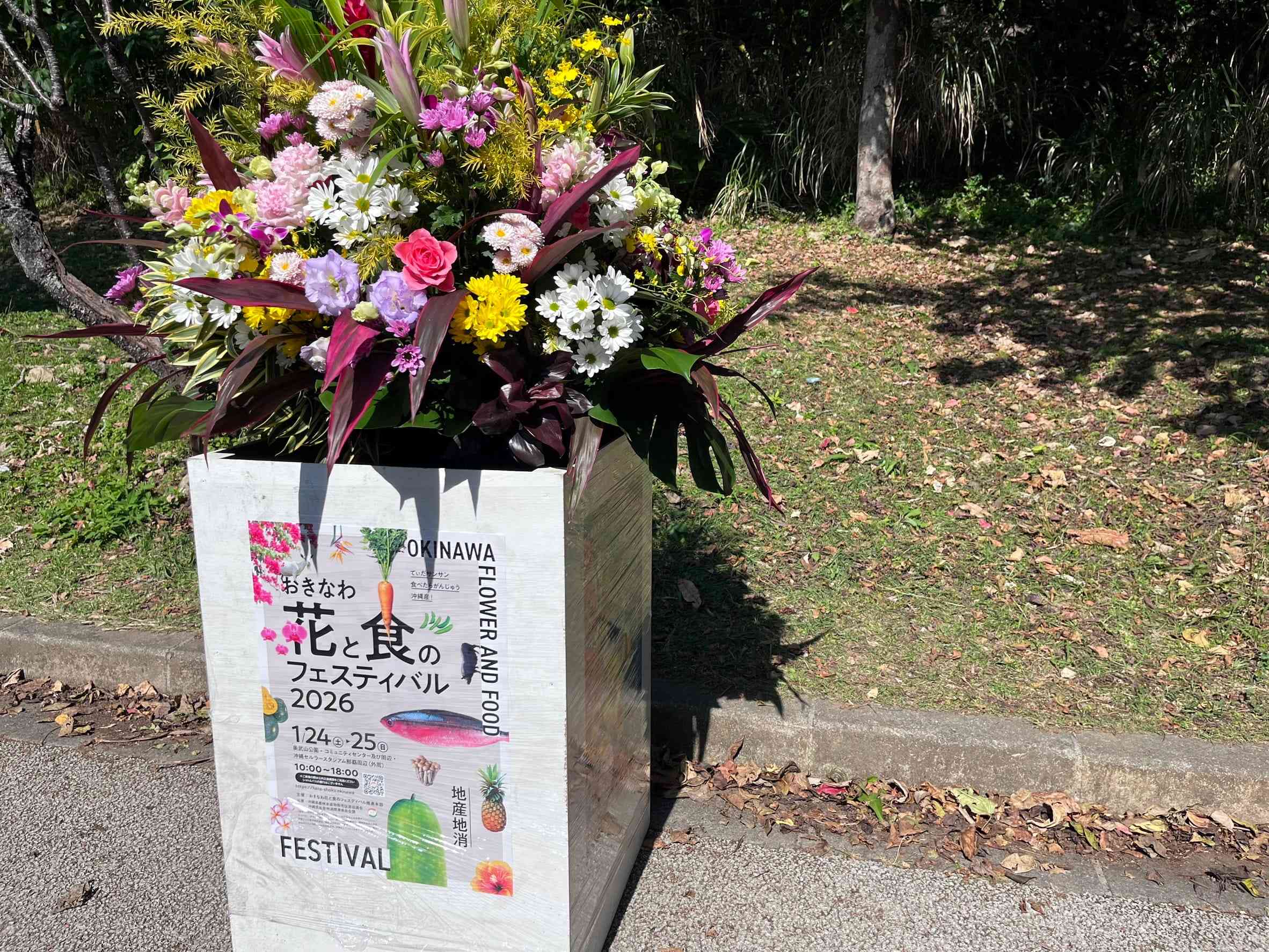 2026年1月24日(土)・25日(日)、那覇市の奥武山公園で開催された「おきなわ花と食のフェスティバル2026」に行ってきました。昨年に引き続きの参加でしたが、今年も県産の新鮮な農林水産物や花々、体験コーナーなど盛りだくさんの内容で、子どもたちも大喜び!