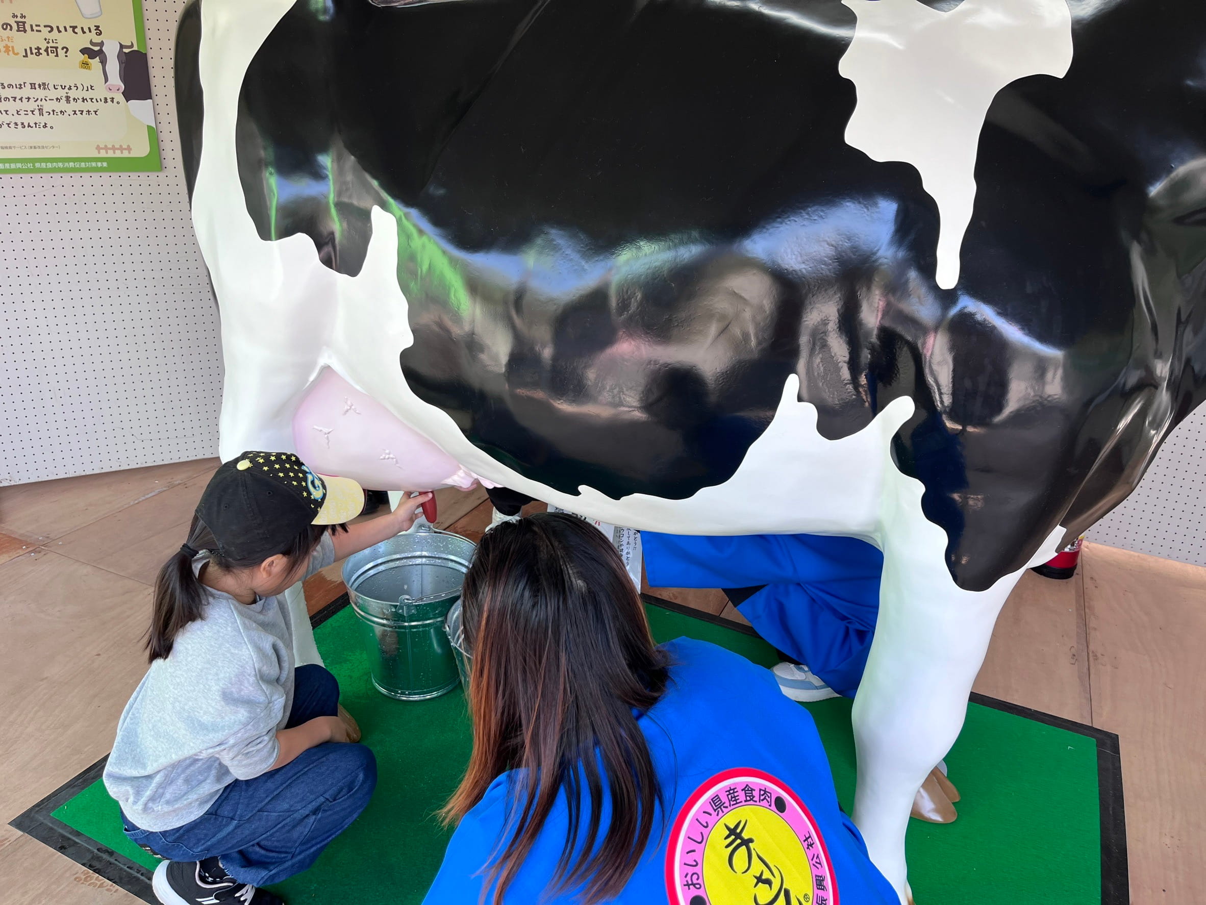 実際に出てくるのはミルクではなく水ですが、乳しぼりの感触は楽しめます。