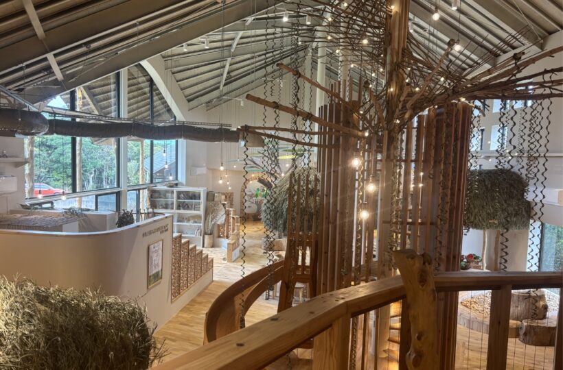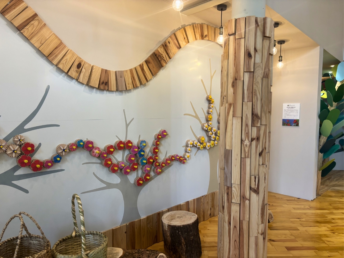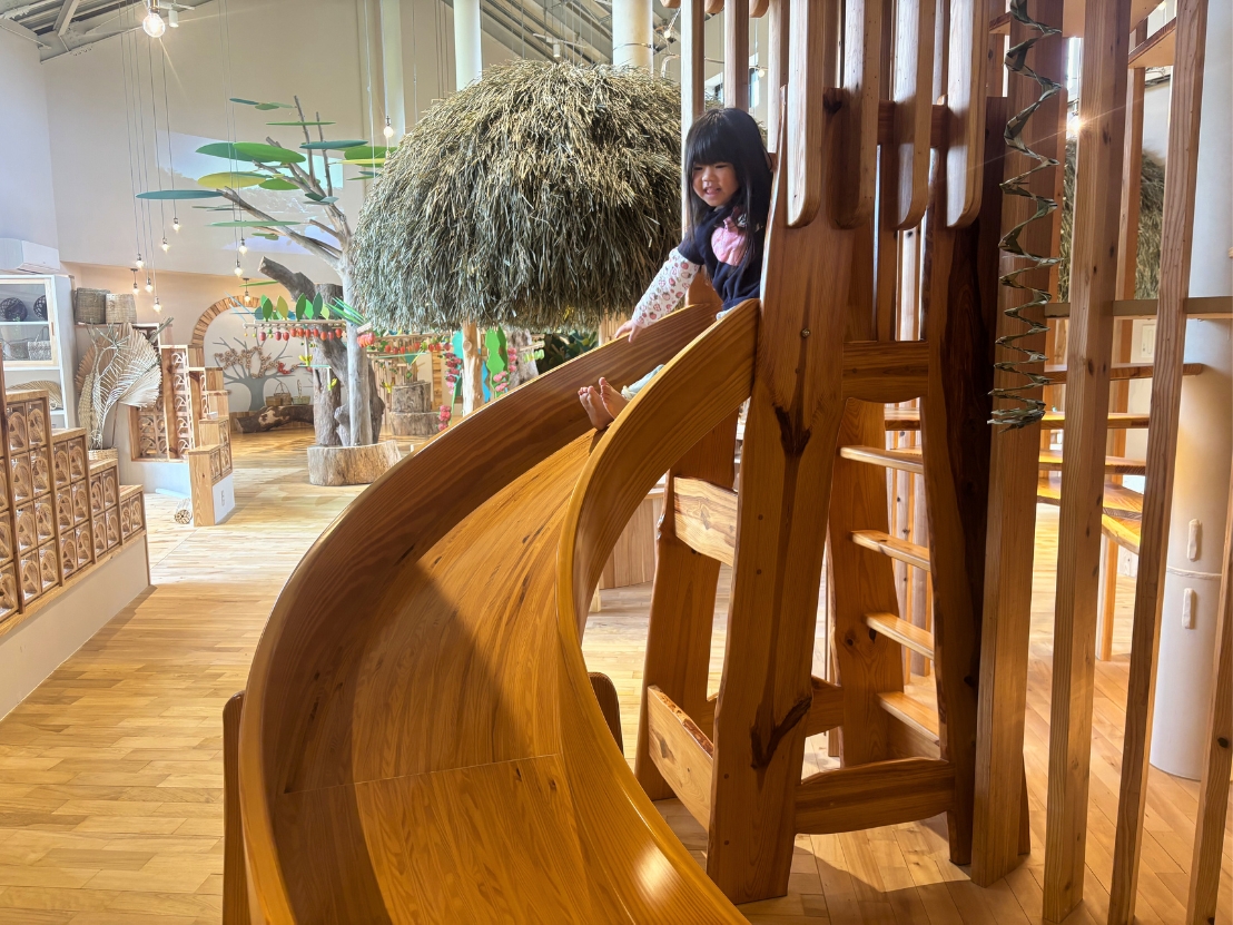 今回はリニューアル直前に、3歳の娘と一足先に館内を見学させていただきました。入口に入った瞬間、木の香りとぬくもりに包まれて、思わず深呼吸。全身が“アーシング”しているような感覚で、大人もとても癒される空間でした。