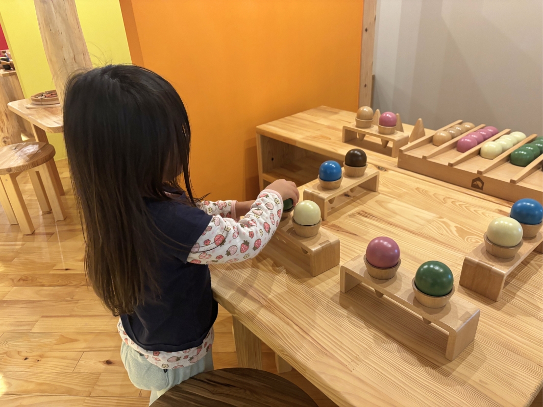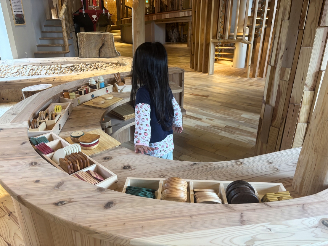 実際に訪れて感じたのは、想像以上に長く過ごせる場所だということ。気づけば2時間以上滞在していました。木のおもちゃは遊び方が決まっていないものも多く、子どもが自分で遊びを見つけていくので、同じ場所でも何度も遊びたくなるんですよね。