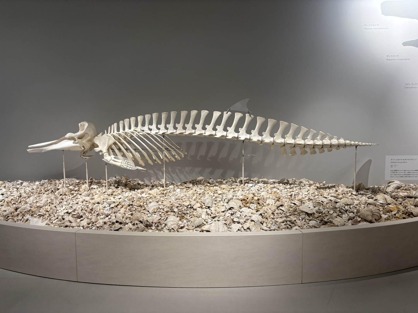 入ってまず目に飛び込んでくるのが、エントランスホール「北谷ウナー」に展示されているクジラの骨格標本。