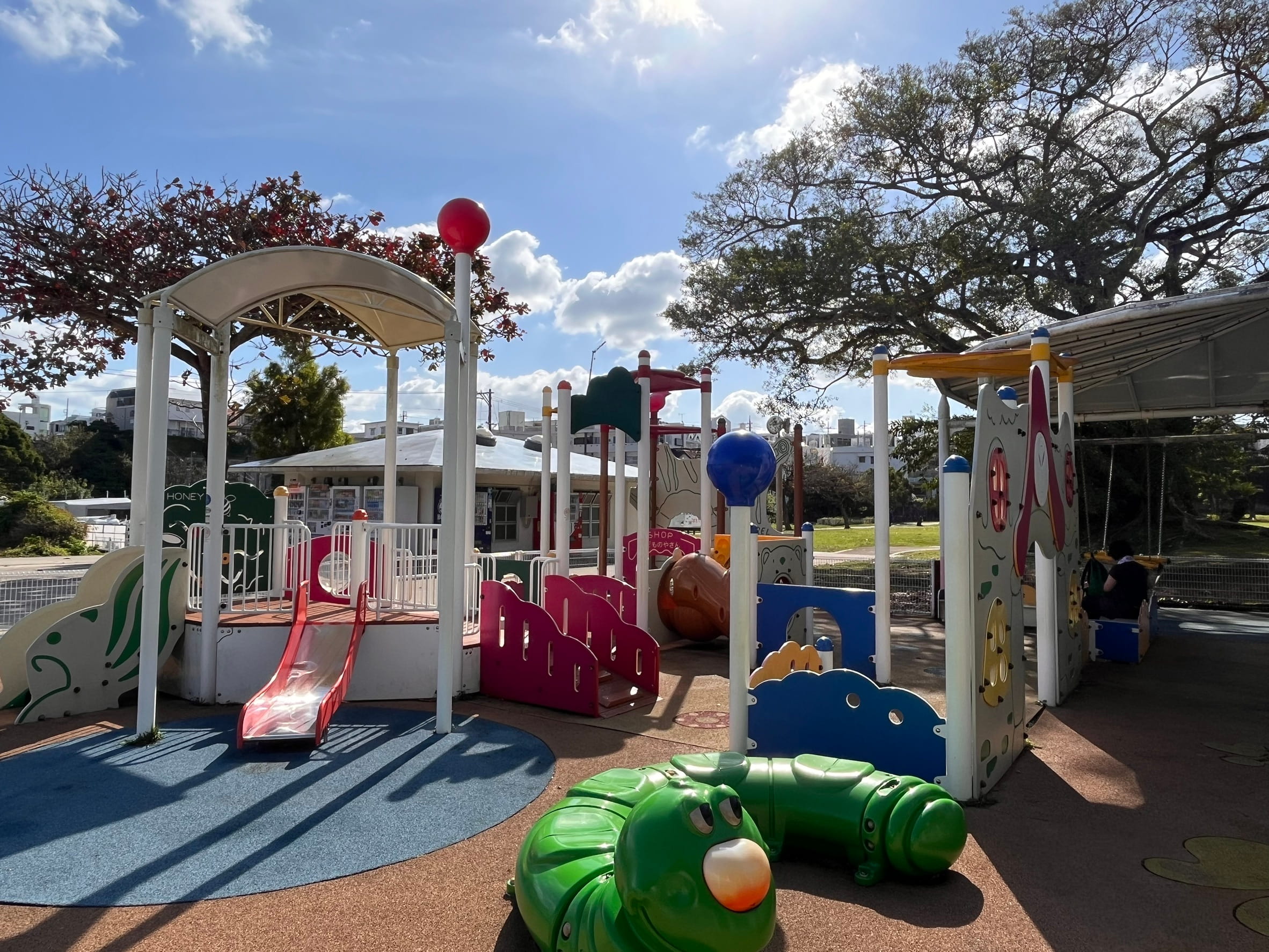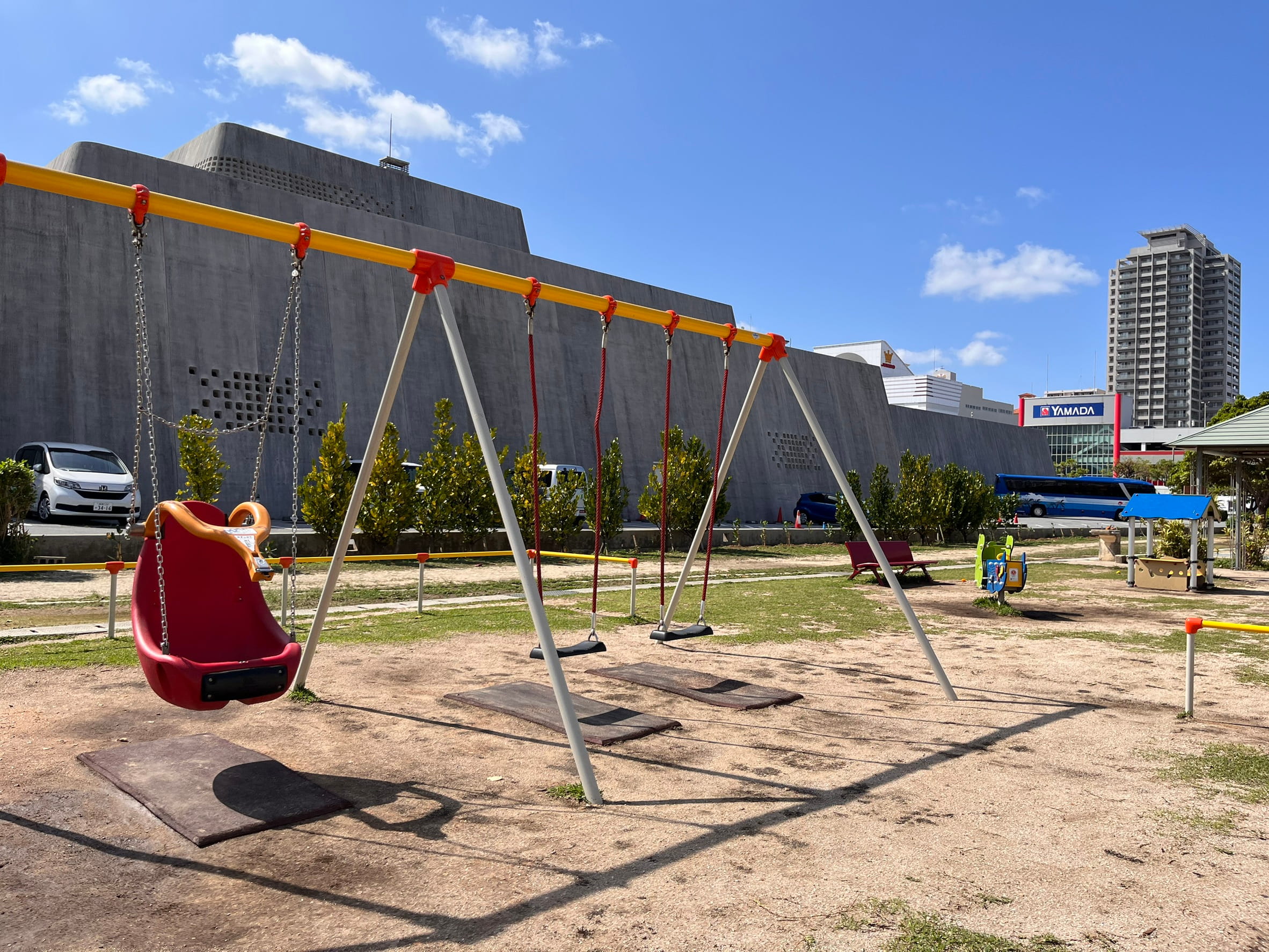 新しくリニューアルした遊具広場は、沖縄県立博物館・美術館のすぐ隣にあります。周辺には商業施設も充実しており、まさに都会の中のオアシスのような存在です。「公園で遊んでランチはショッピングモールで」という欲張りプランも叶いますよ。