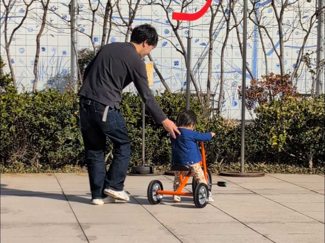 広々としたエリアで三輪車に乗って走り回れる自由さに子どもは大はしゃぎ!