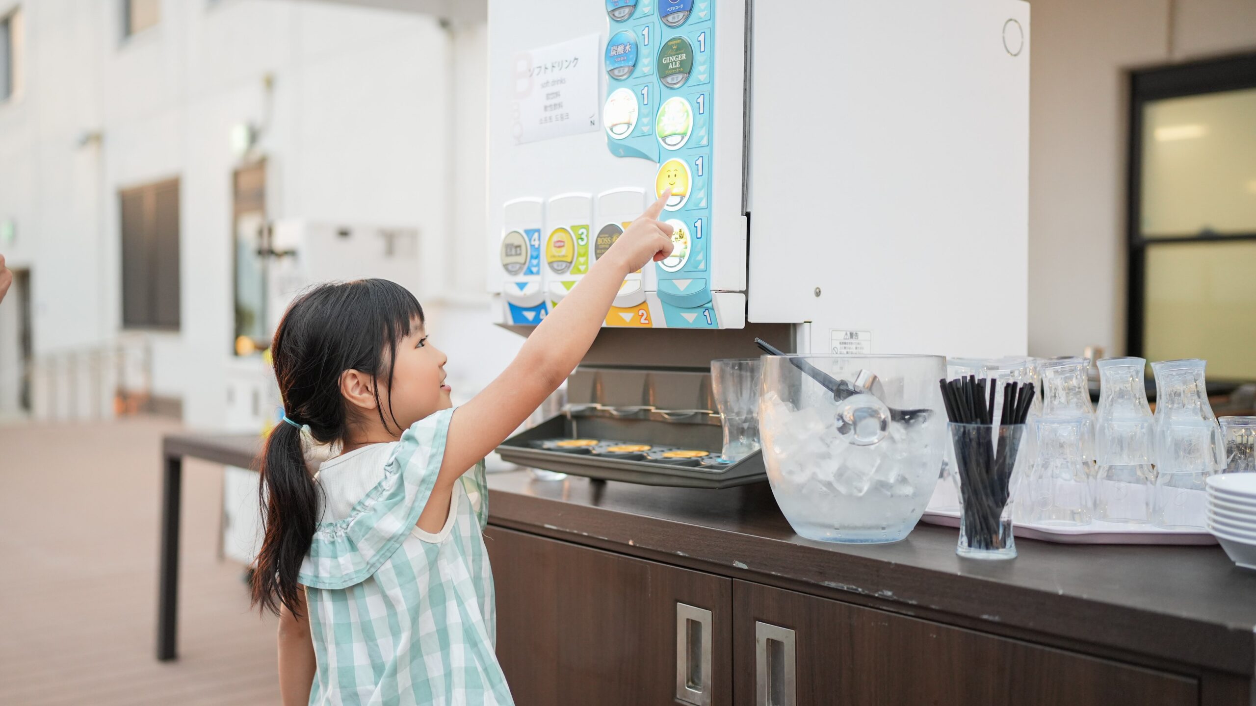 ソフトドリンクコーナーには、コーラ・オレンジ・ウーロン茶・炭酸水・ジンジャーエール・シークワーサー&パインと、沖縄らしいドリンクも。